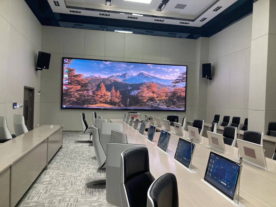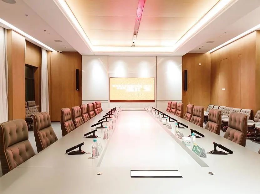 另外,會議室還安裝了平板無紙化會議系統(tǒng)來實現(xiàn)會議全過程的智能化管理,提升會議協(xié)作效率的同時,也在貫徹落實節(jié)約型機(jī)關(guān)建設(shè),更加綠色環(huán)保。