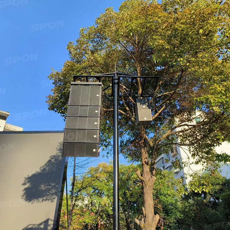 戶(hù)外操場(chǎng)區(qū)域廣闊且是露天主席臺(tái),所以所有設(shè)備均采用戶(hù)外防水設(shè)計(jì),主擴(kuò)聲采用戶(hù)外線(xiàn)陣系統(tǒng),搭配主席臺(tái)返聽(tīng)音箱等,保證廣播聲音能傳達(dá)到各角落位置。另外考慮到日后學(xué)校操場(chǎng)活動(dòng)需求,部署了定向天線(xiàn)系統(tǒng)增強(qiáng)無(wú)線(xiàn)話(huà)筒的穩(wěn)定性,并為有線(xiàn)話(huà)筒預(yù)留了充足的接口,讓?xiě)敉饴曇魝鞑ミ_(dá)到最佳效果。
