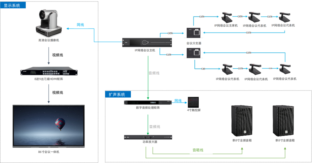 通過有線+無線使用搭配,確保領(lǐng)導(dǎo)席位使用有線會(huì)議發(fā)言單元發(fā)言穩(wěn)定可靠,無線話筒作為活動(dòng)主持或者流動(dòng)使用。