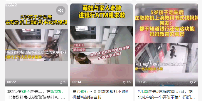 不僅如此,銀行ATM機的緊急求助功能,多次幫助走失兒童和困難人群,起到了社會救助的作用。很多網友表示“被孩子上了一課”。