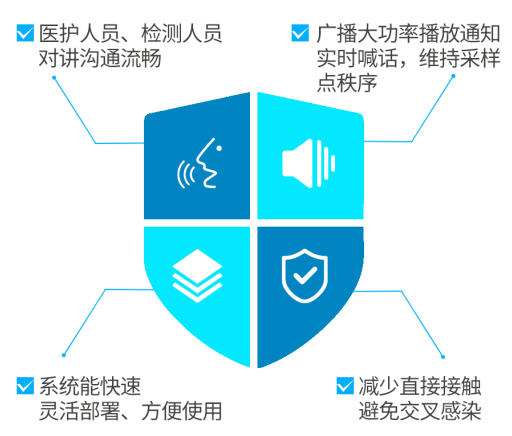 即醫(yī)護(hù)采樣人員在采樣窗口既能與被采樣人順暢溝通,又能完成喊話廣播維持艙外排隊(duì)秩序、播放通知。
