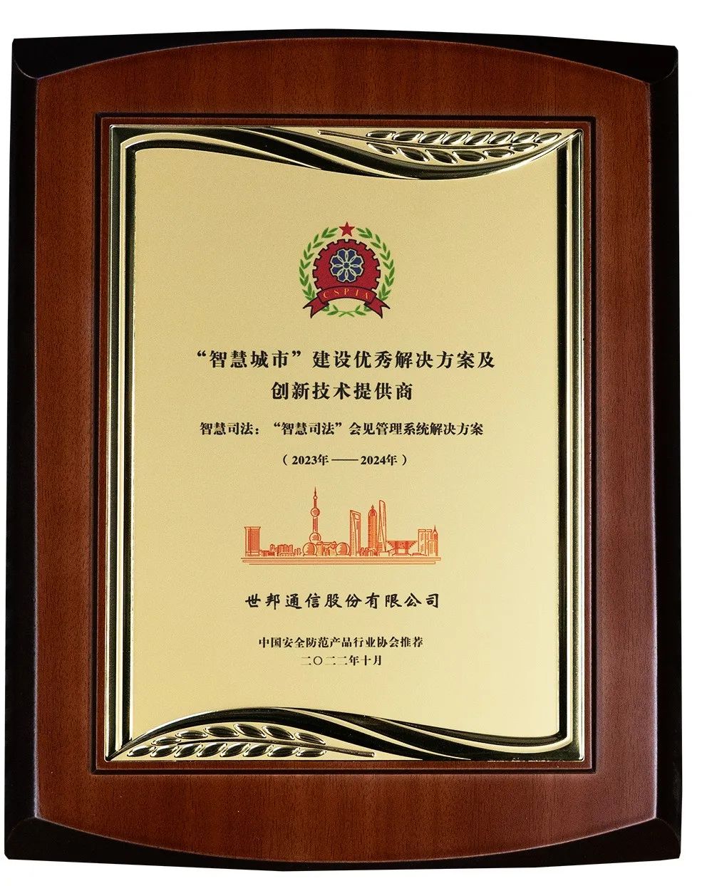 新年喜氣洋洋,世邦通信憑借“智慧交通”鳴笛抓拍技術及解決方案和“智慧司法”會見管理系統(tǒng)解決方案被中國安全防范產(chǎn)品行業(yè)協(xié)會評為“智慧城市”建設優(yōu)秀解決方案及創(chuàng)新技術提供商。