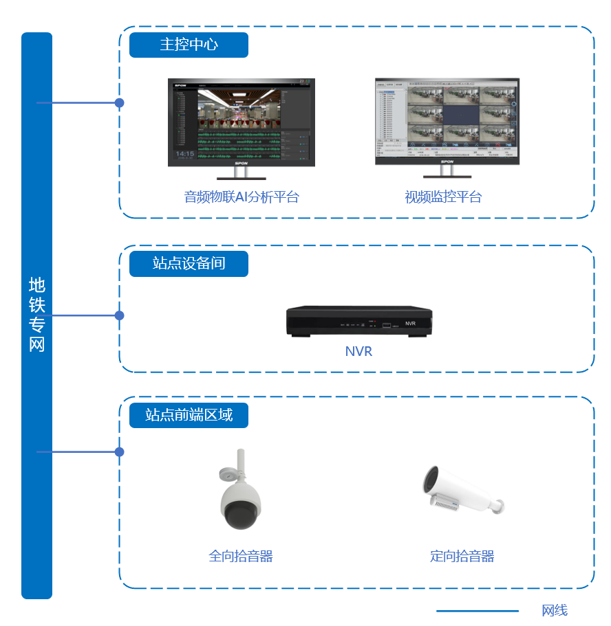我們針對軌道交通行業(yè)發(fā)展現狀,專為軌道交通行業(yè)場景定制音頻監(jiān)控系統(tǒng)方案。方案覆蓋站點出入口、服務中心、安檢口、主要通道、等候區(qū)等重要場景的音頻監(jiān)控,具備網絡化管理、實時監(jiān)聽、音頻回放等功能,實現與視頻監(jiān)控互聯互控、共享共用,形成基本覆蓋軌道交通站點治安防范區(qū)域的全天候音視頻監(jiān)控網絡,快速提升軌道交通治安監(jiān)控、管理的能力與水平,創(chuàng)造安全、和諧的乘車環(huán)境。