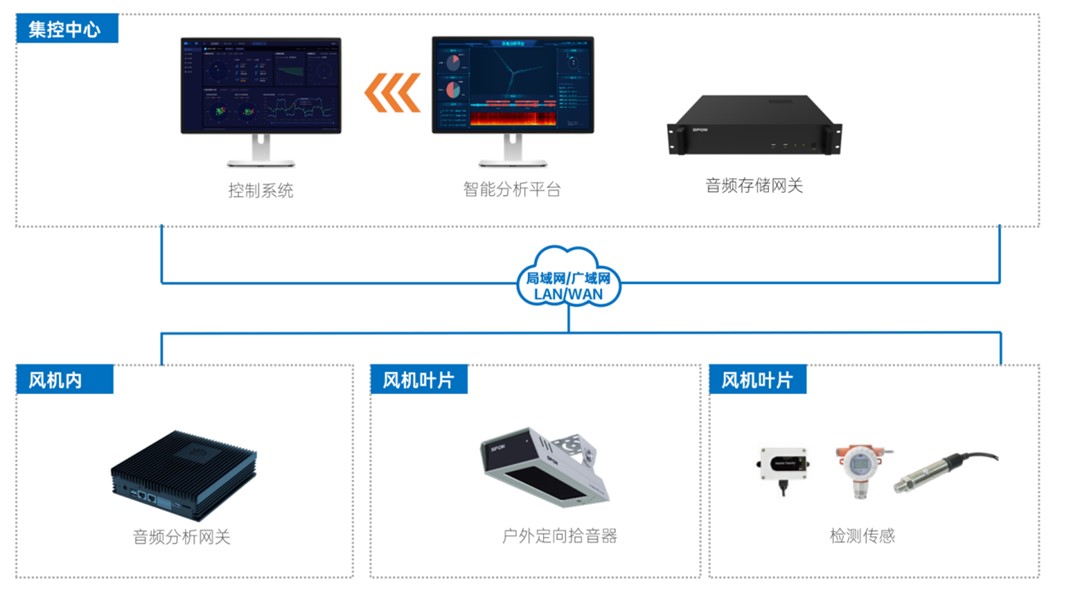 世邦通信專為風(fēng)電行業(yè)定制的葉片預(yù)測(cè)性維護(hù)解決方案,通過監(jiān)聽葉片氣動(dòng)噪聲的音頻采集設(shè)備和基于AI深度學(xué)習(xí)的音頻特征識(shí)別技術(shù),實(shí)時(shí)把握葉片運(yùn)行狀態(tài)、健康狀況等關(guān)鍵信息。
